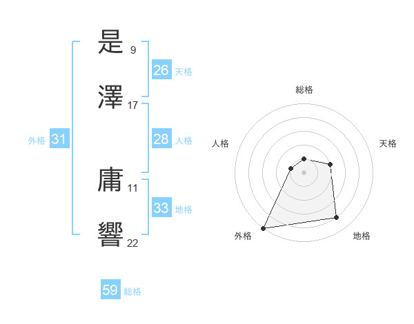 是澤 庸響さんを姓名の画数から五運を鑑定