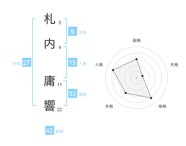 札内 庸響さんの総格は42画の3点!