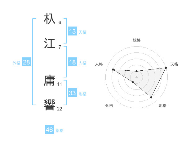 杁江 庸響さんの総格は46画の1点!