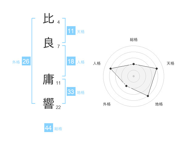 比良 庸響さんの総格は44画の2点!