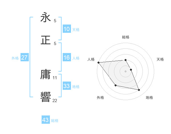 永正 庸響さんの総格は43画の2点!