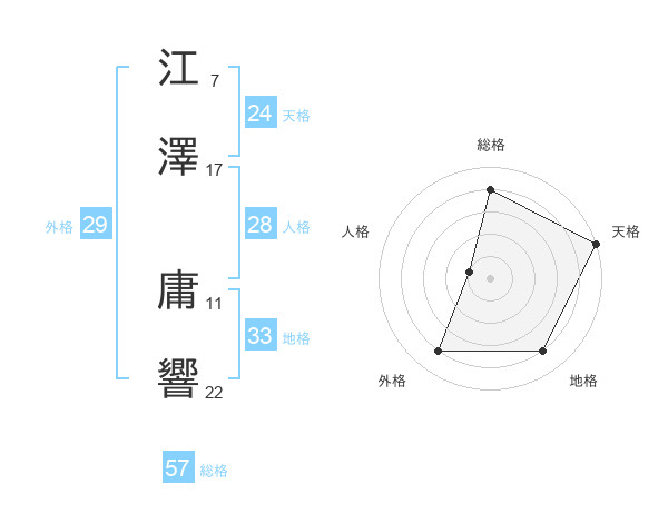 江澤 庸響さんの総格は57画の4点!