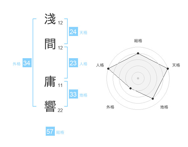 淺間 庸響さんを姓名の画数から五運を鑑定