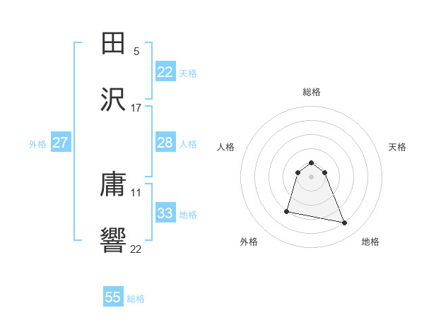 田沢 庸響さんを姓名の画数から五運を鑑定