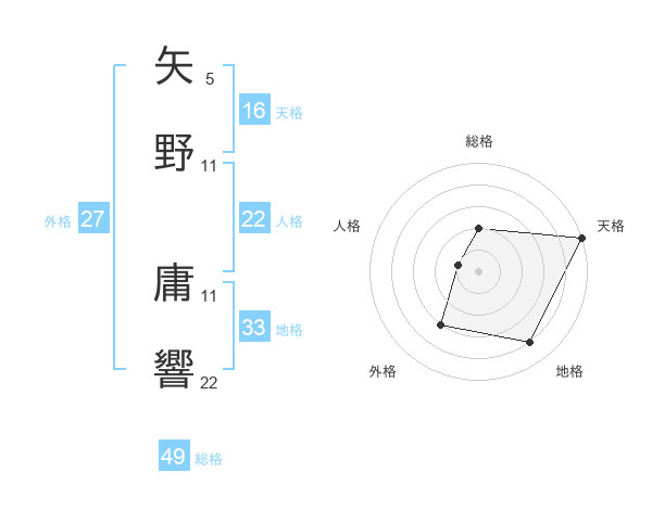 矢野 庸響さんの総格は49画の2点!