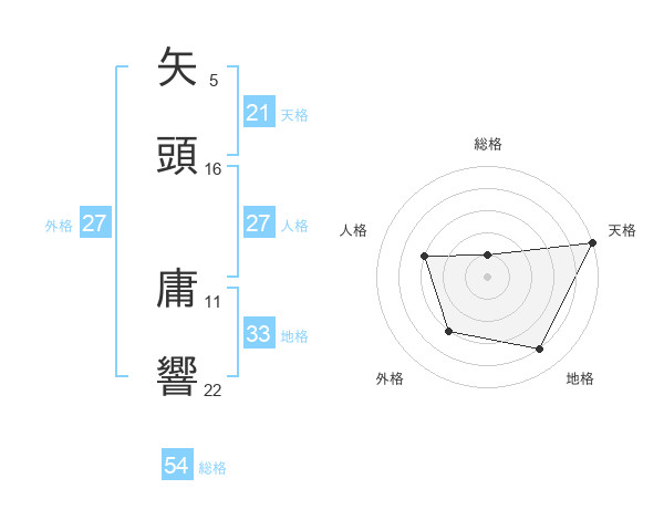 矢頭 庸響さんを姓名の画数から五運を鑑定