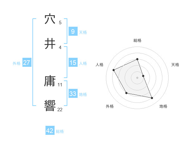 穴井 庸響さんの総格は42画の3点!