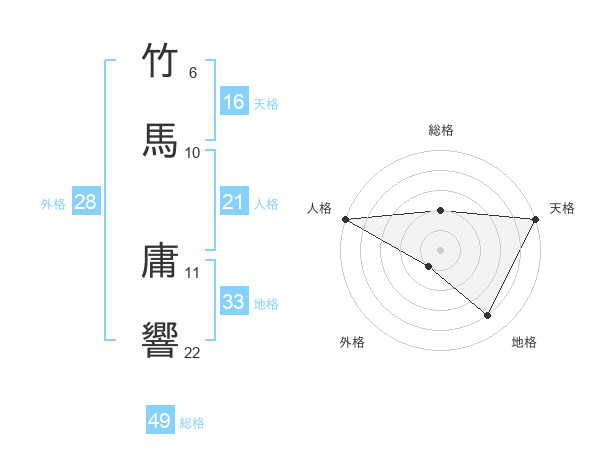 竹馬 庸響さんを姓名の画数から五運を鑑定