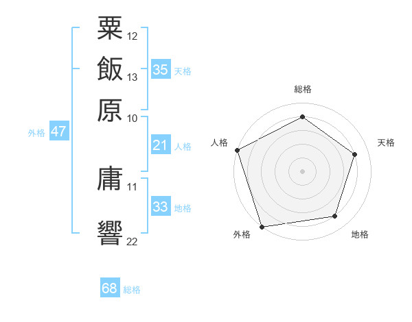 粟飯原 庸響さんの総格は68画の4点!
