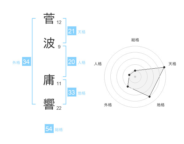 菅波 庸響さんの総格は54画の1点!