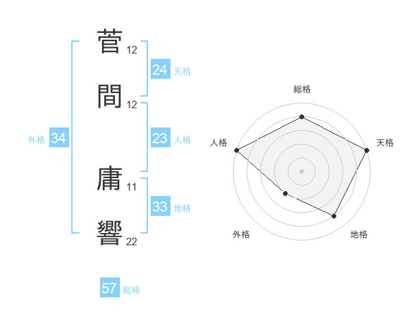 菅間 庸響さんの総格は57画の4点!