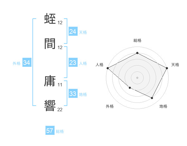 蛭間 庸響さんを姓名の画数から五運を鑑定
