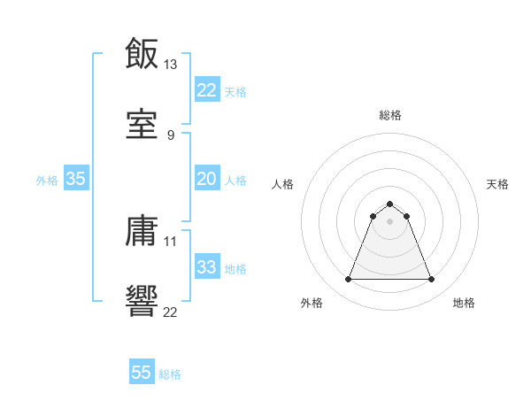 飯室 庸響さんの総格は55画の1点!