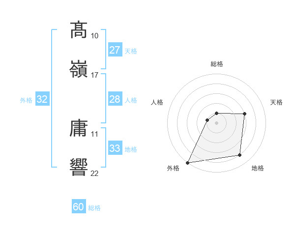 髙嶺 庸響さんの外格は32画の5点!