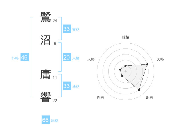 鷺沼 庸響さんの総格は66画の1点!