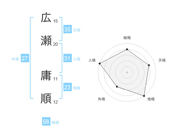 広瀬 庸順さんを姓名の画数から五運を鑑定