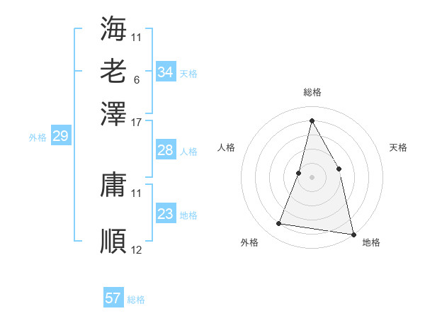 海老澤 庸順さんを姓名の画数から五運を鑑定