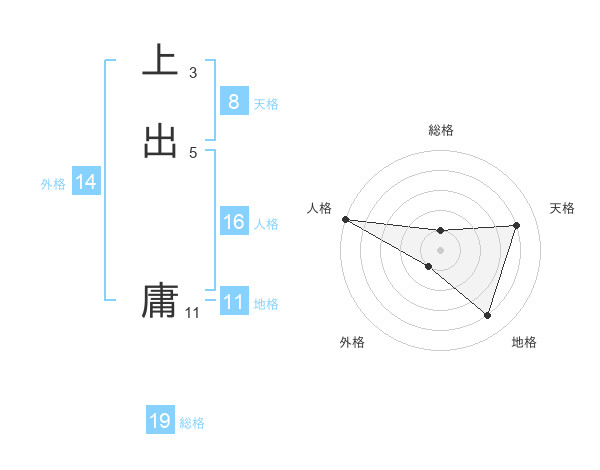 上出 庸さんの総格は19画の1点