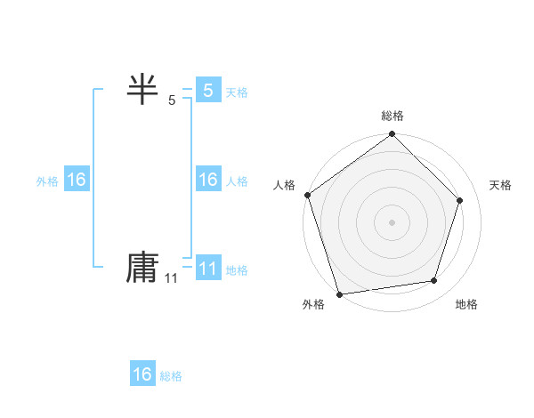 半 庸さんの人格は16画の5点!