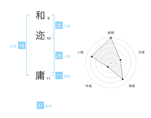 和迩 庸さんの外格は19画の1点!