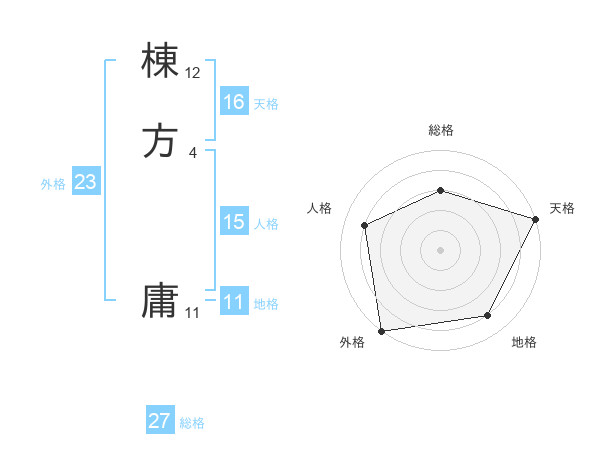 棟方 庸さんの総格は27画の3点!