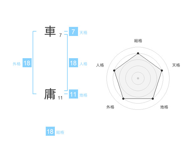 車 庸さんの総格は18画の4点!