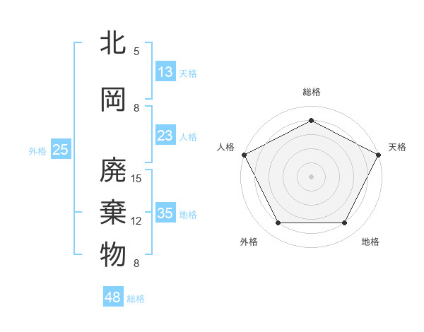 北岡 廃棄物さんの総格は48画の4点!