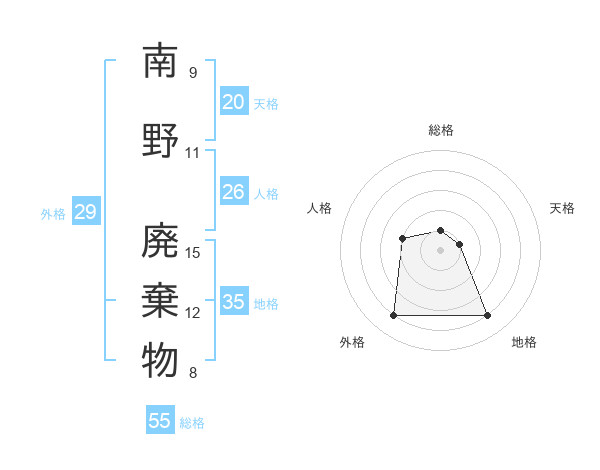 南野 廃棄物さんを姓名の画数から五運を鑑定
