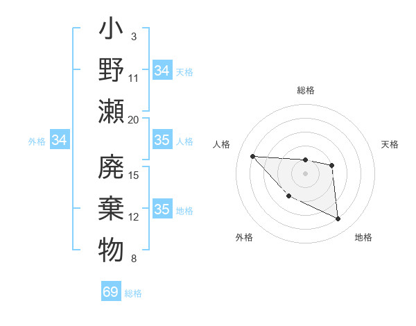小野瀬 廃棄物さんの名前の鑑定結果は!