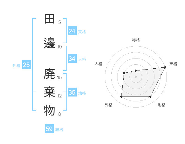 田邊 廃棄物さんを姓名の画数から五運を鑑定