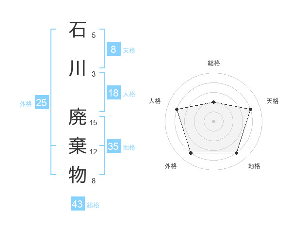 石川 廃棄物さんを姓名の画数から五運を鑑定