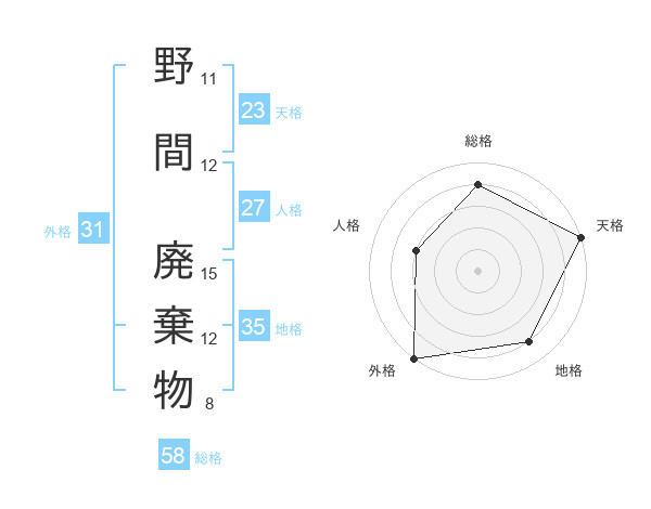野間 廃棄物さんを姓名の画数から五運を鑑定