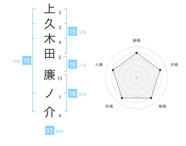 上久木田 廉ノ介さんを姓名の画数から五運を鑑定