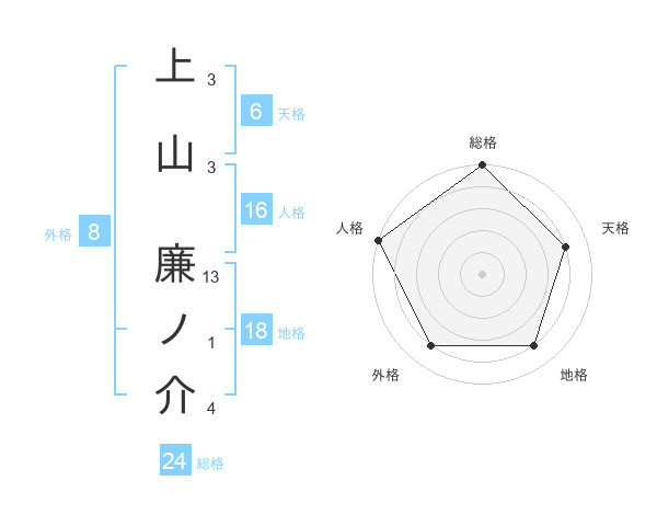 上山 廉ノ介さんを姓名の画数から五運を鑑定