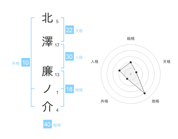 北澤 廉ノ介さんを姓名の画数から五運を鑑定