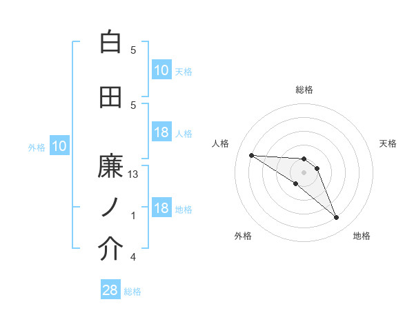 白田 廉ノ介さんの天格は10画の1点!