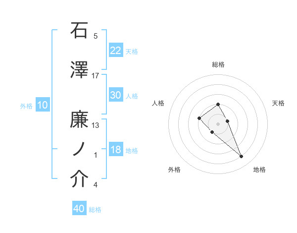 石澤 廉ノ介さんを姓名の画数から五運を鑑定