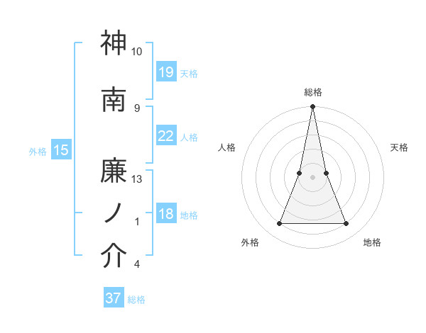 神南 廉ノ介さんの総格は37画の5点!