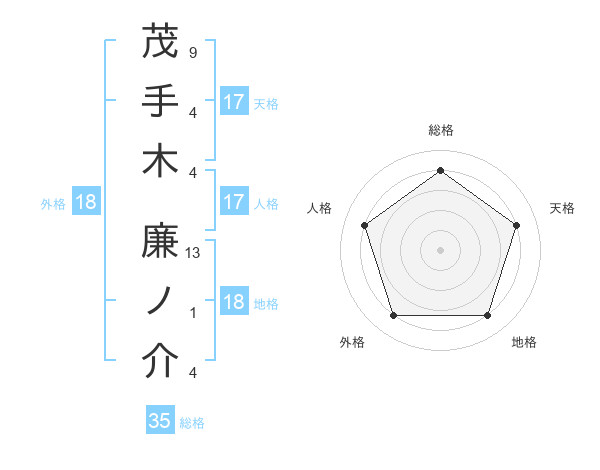 茂手木 廉ノ介さんを姓名の画数から五運を鑑定