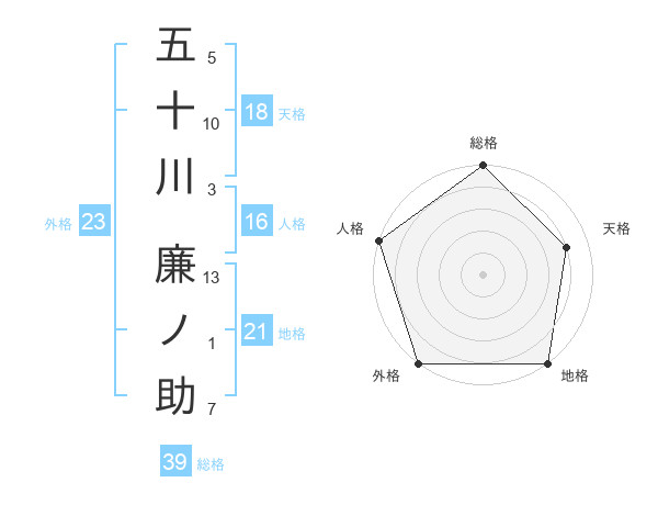 五十川 廉ノ助さんを姓名の画数から五運を鑑定