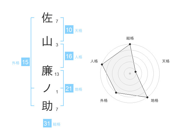 佐山 廉ノ助さんを姓名の画数から五運を鑑定