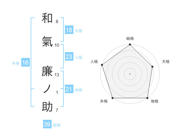 和氣 廉ノ助さんの総格は39画の5点!