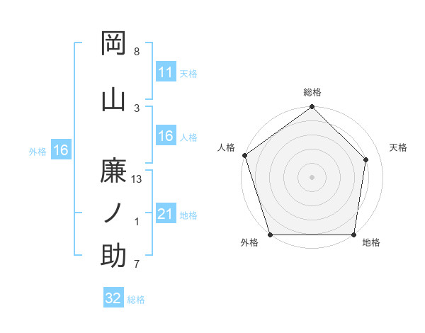 岡山 廉ノ助さんを姓名の画数から五運を鑑定