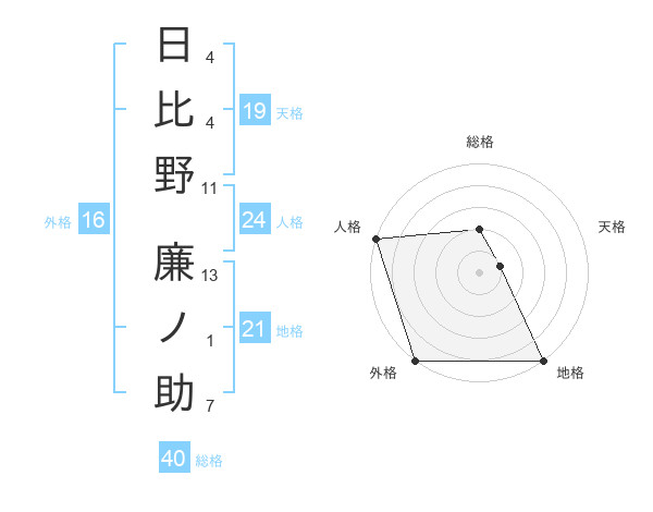 日比野 廉ノ助さんを姓名の画数から五運を鑑定