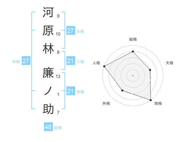 河原林 廉ノ助さんを姓名の画数から五運を鑑定