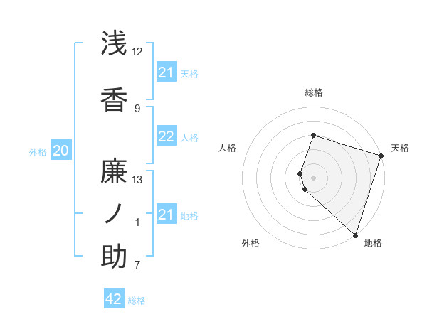 浅香 廉ノ助さんを姓名の画数から五運を鑑定