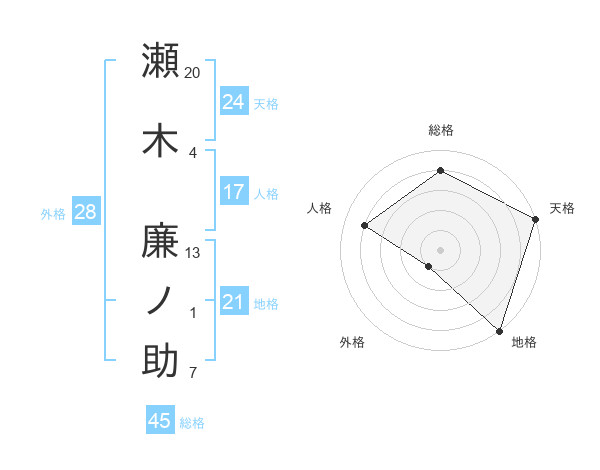 瀬木 廉ノ助さんを姓名の画数から五運を鑑定
