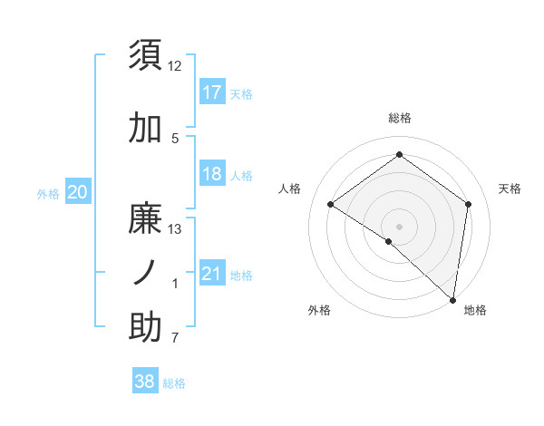 須加 廉ノ助さんを姓名の画数から五運を鑑定