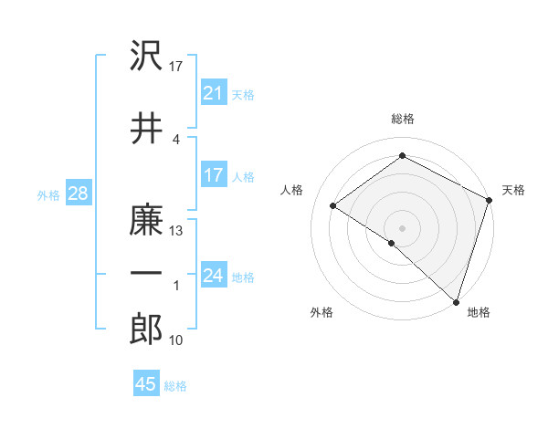 沢井 廉一郎さんの天格は21画の5点!