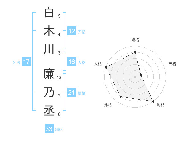 白木川 廉乃丞さんを姓名の画数から五運を鑑定